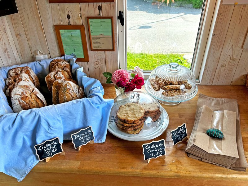 Backtage sind Dienstag, Donnerstag, Freitag und Samstag. Auch an den anderen Tagen stehen im kleinen Ladenabteil Vollkornbrote und süßes Gebäck für Euch bereit, solange der Vorrat reicht.