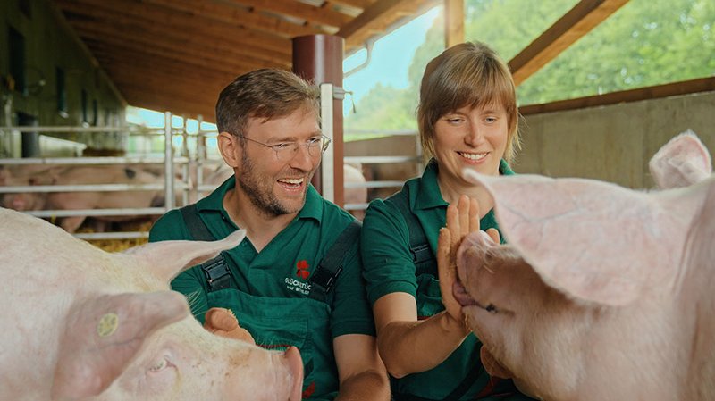 Wir, Katharina und Hendrik Bielfeldt, sind Landwirte aus Leidenschaft. Wir möchten unseren Schweinen in unserem Stroh-Auslauf-Stall bestmöglichste Bedingungen bieten und unseren Kunden mit viel Transparenz und persönlichem Kontakt unsere gelebte Landwirtschaft zeigen und erklären. Aus diesen Gründen haben wir 2022 unsere eigene Hofmetzgerei direkt bei uns auf dem Hof gebaut. Mit viel Stolz können wir nun unsere, von Anfang bis Ende vom Hof Bielfeldt stammenden, GLÜCKSSTÜCK-Produkte an unsere wertschätzenden Kunden übergeben. Das macht uns glücklich!